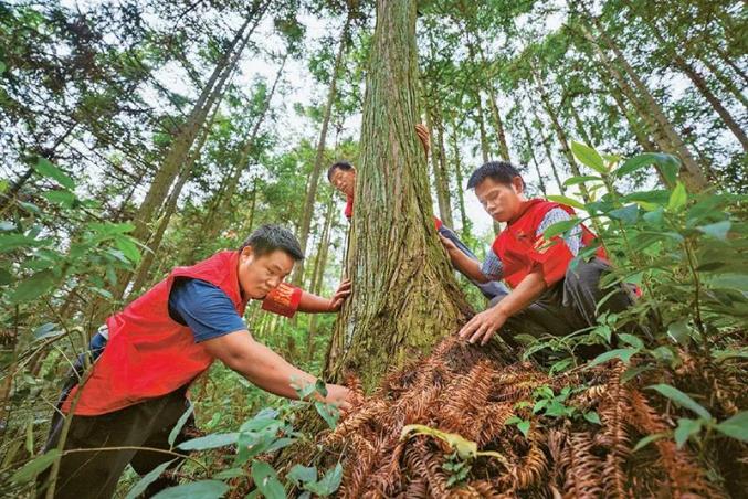 2023年8月15日是首个全国生态日,各地开展活动提高人们生态文明意识,增强保护环境的自觉性。图为全国生态日当天,护林员和志愿者在贵州省黔东南苗族侗族自治州丹寨县排调镇宰宿村巡查山林。 新华社发 杨武魁/摄习近平总书记强调,必须始终坚持用最严格制度最严密法治保护生态环境,保持常态化外部压力,同时要激发起全社会共同呵护生态环境的内生动力。