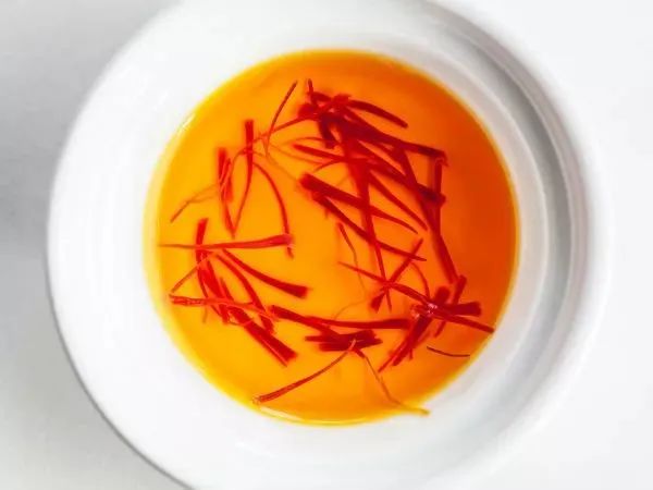 如果你想让番红花的味道彻底释放,那么你可以在做菜之前把那几根番红花丢进少量清水里,像泡茶一样泡上一阵,就会得到红艳艳的汤水,再均匀地浇在食物上。