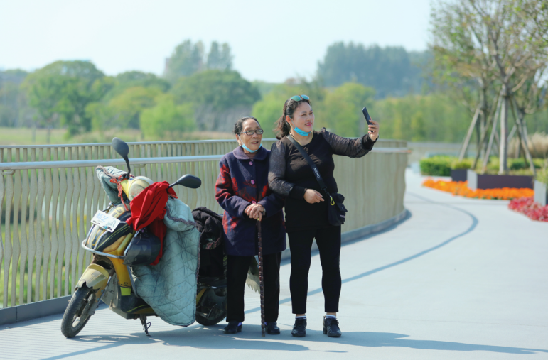 元荡慢行桥上打卡的百姓 摄影:刘艾菁