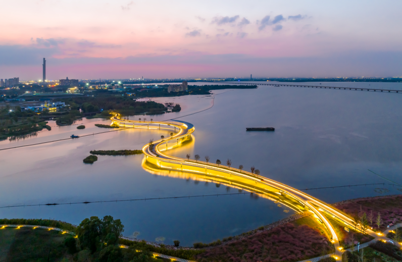 一桥飞架苏沪,元荡慢行桥美出新高度