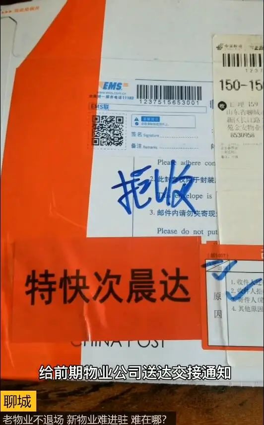 聊城金柱大学城东苑小区业委会主任崔小丽告诉记者,业委会曾多次通过当面和快递方式给前期物业公司送达交接通知,也都被拒收。“我们给老物业金安物业下的交接通知、召开交接会的时间、撤场移交的通知,全部是拒收。”