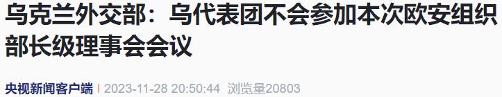 乌克兰外交部:乌代表团不会参加本次欧安组织部长级理事会会议