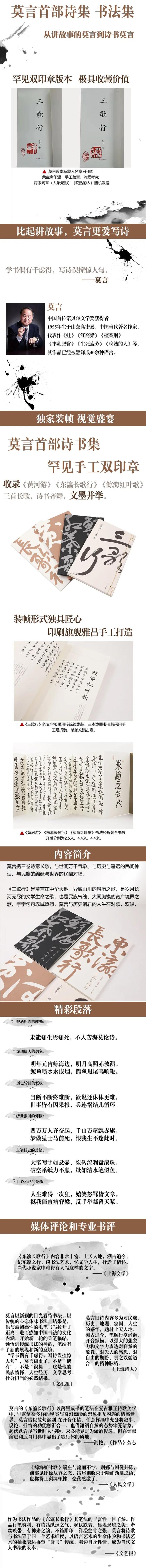 莫言携三卷诗意长歌,与世间的万千气象、与遥远的民间神话、与世界的博大辽阔对唱。《三歌行》是莫言在中华大地、异域山川的游历之歌,是岁月长河的生命之歌,也是民族气魄、大同胸襟的境界之歌。