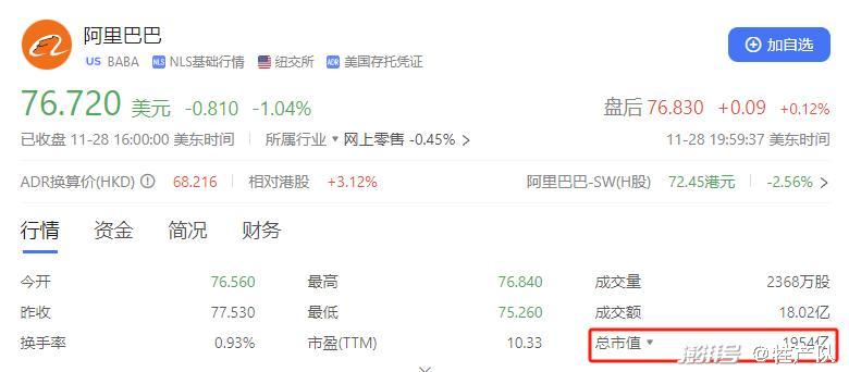 三年前,阿里巴巴市值还在8600亿美元的超高位,跻身全球前十大互联网科技公司,与阿里集团位于同一水平线上的是亚马逊、微软、facebook这样的世界顶级科技集团。可仅仅过去3年,阿里市值就只剩1954亿美元了,蒸发了77%。马云还被传出,以80美元/股的超低价,出售原始股份。后来,马云办公室亲自出来辟谣,价格太低,一股没卖,长期持有,坚定看好。