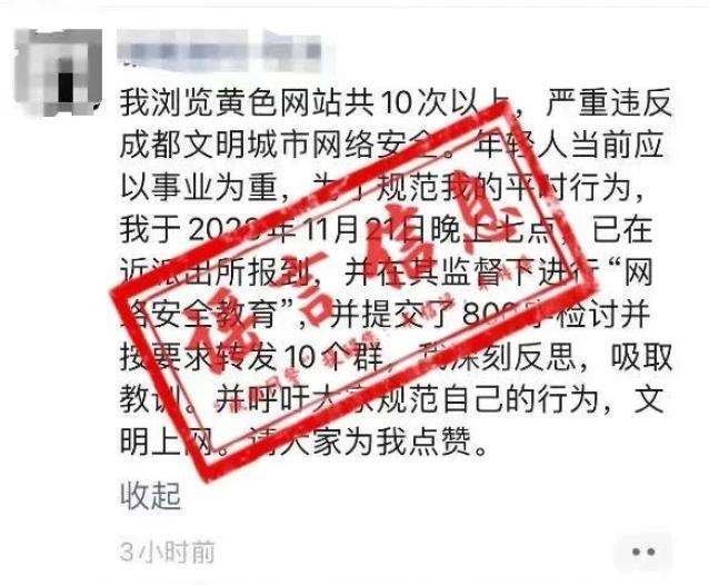 经重庆市垫江县相关部门核实,男子发布的信息不实,所称“垫江文明城市网络安全”“在其监督下进行了网络安全知识教育,按照要求录像并发布在抖音上”均为其编造的谣言信息。上述两个自媒体账号为李某、陈某所有,IP地址显示为重庆垫江,两人为博眼球编造段子拍成恶搞视频,上传至个人社交账号,在当地造成不良影响。目前,当地公安机关已对李、陈二人进行了批评教育,两人均认识到自己的错误网络行为并删除了视频。此外,成都也有个别网民在朋友圈公开做检讨,称“浏览黄色网站10次以上,严重违反成都文明城市网络安全,已在相关单位的监督下进行网络安全知识教育,并提交800字检讨,要求转发10个群”,相关截图在微信圈群广泛传播,引发民众围观和讨论。