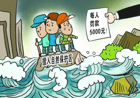 此外,刑法还专门规定了妨害文物管理罪和破坏环境资源保护罪,即包括违反国家相关规定,毁坏珍贵树木、国家重点保护的其他植物或损毁保护区内名胜古迹等非法行为。2017年,3名游客在江西三清山景区攀登巨蟒峰的过程中,在山体钻孔、打入岩钉,给景区造成永久伤害。法院一审判决,其中两人获刑,并处罚金;3人被判连带赔偿环境资源损失600万元,用于公共生态环境保护及修复。笔者提醒大家,自然保护区不是旅游区,未经主管部门批准,严禁在自然保护区内开展观光游览、“探索秘境”、登山戏水等活动或招揽、组织他人进入自然保护区,违者将依法追究责任。