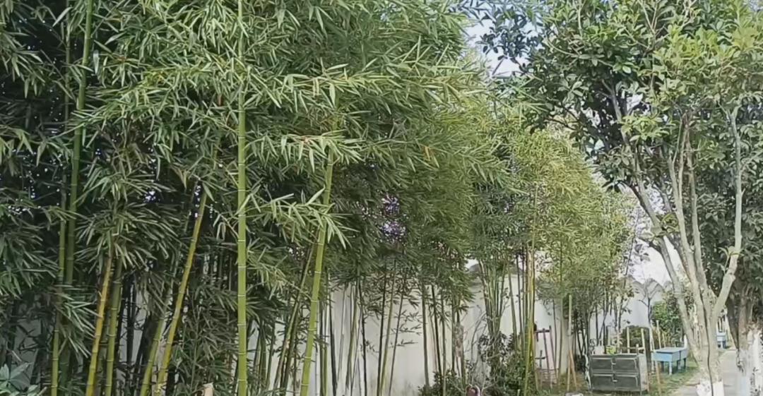 注入绿色环保文化在小街镇中心幼儿园小街园区围墙内,有成排的竹子。