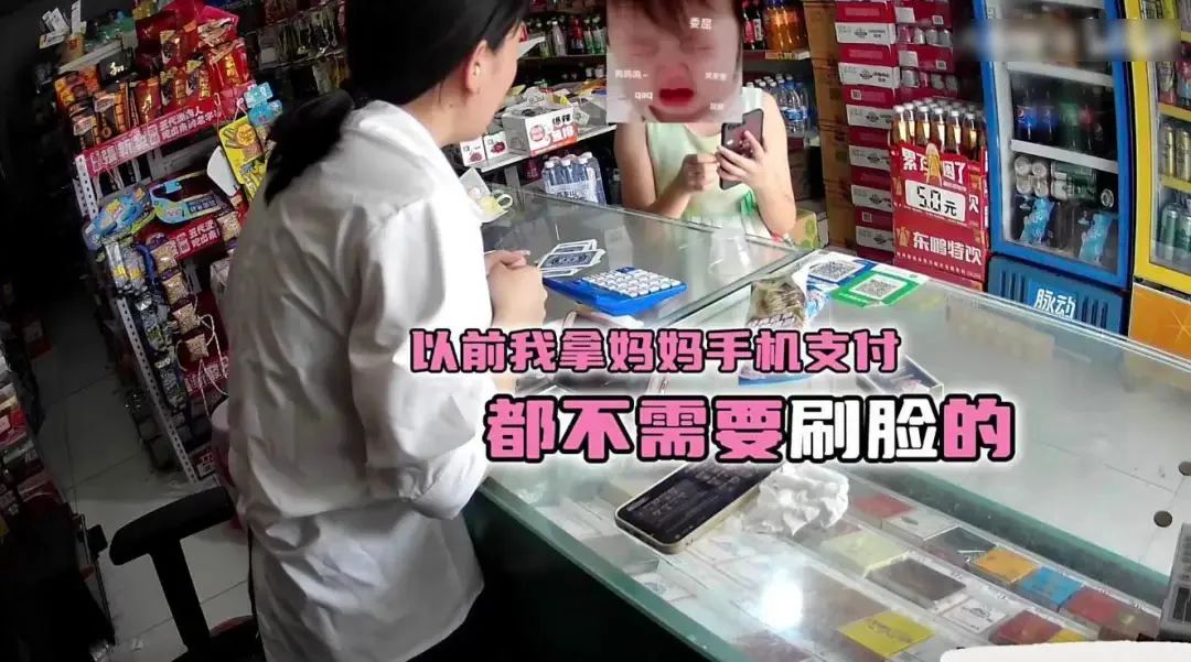一个小女孩拿着妈妈的手机来买雪糕