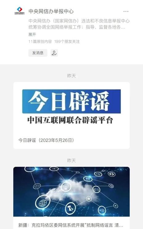 其次,可以关注中央网信办举报中心微信公众号进行举报。