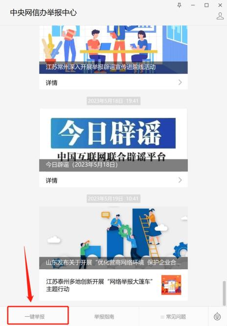 第二步:点击“一键举报”链接进入“举报入口”页面。