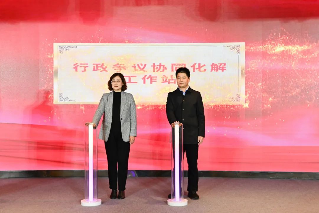 活动中,刘冬梅、徐高峰共同为张家港市行政争议协同化解工作站揭牌。