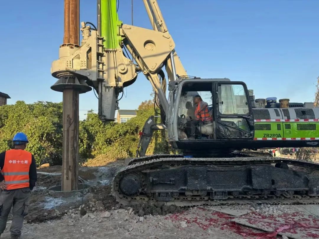本次开钻的项目首桩桩基位为头陀站SZH3号试桩,桩径1米,桩长34米,桩基地质为黏土—淤泥—含黏性土圆砾—黏土—含黏性土圆砾—强风化凝灰岩—弱风化凝灰岩,桩基采用旋挖钻机成孔,为后续工程建设顺利推进打下坚实基础。