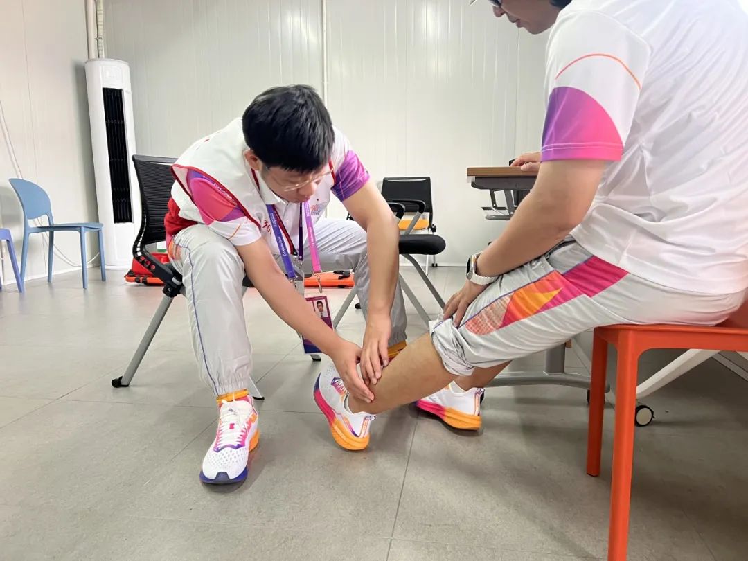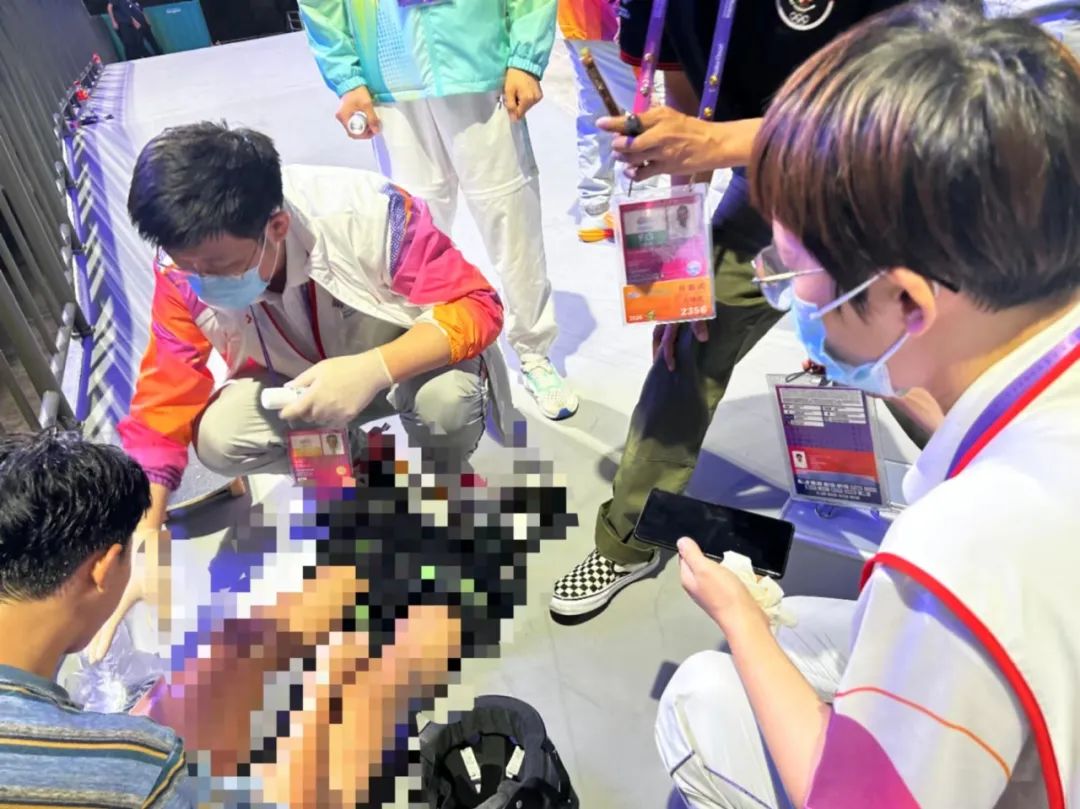 在今年杭州亚运会的赛事医疗保障中,徐文斌也冲锋在前。他工作的地点是钱塘轮滑中心,因为距离较远,每天早上5点多就要从家里出发,晚上回到家往往已是半夜。“岗位就在场地边上,运动员比赛或热身的时候,我们要一刻不停地盯着,”徐文斌印象最深刻的就是运动员在半空中“飞来飞去”表演各种炫酷动作,不过他可没时间欣赏这些,运动员落地的那一刻是他最揪心的,“一旦有受伤的,裁判许可后,我和同伴就马上冲进场地进行治疗。如果运动员在滑板场地的碗池里受伤,我们还要架起梯子爬进去,用担架把伤者运出来。”