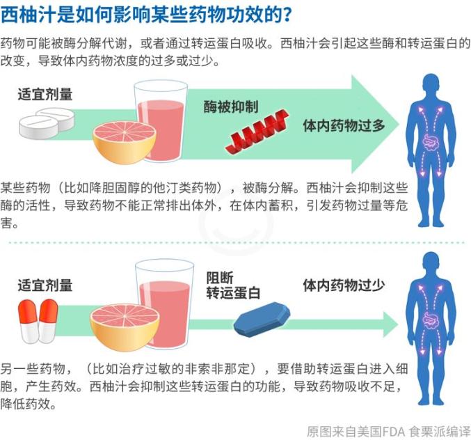这是因为西柚中含有的一种物质,会影响药物代谢,造成血液内药物过多或过少。过多可能增加不良反应,过少则降低药效。