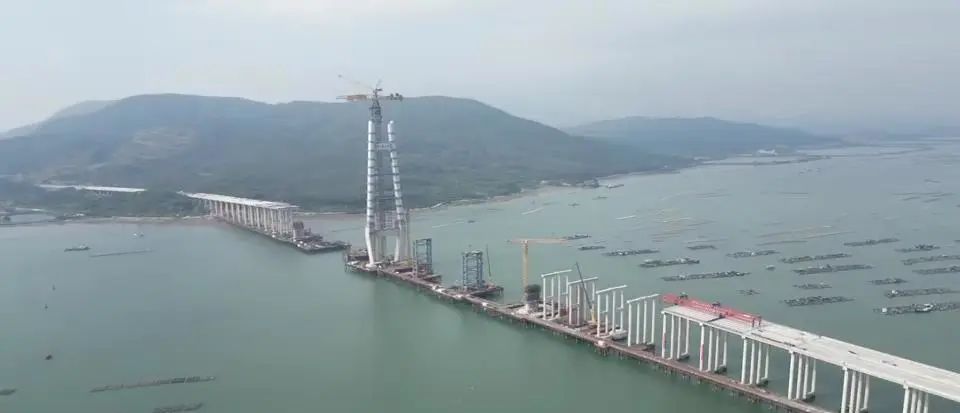海上“巨龙”初现!阳江港大桥主塔成功封顶