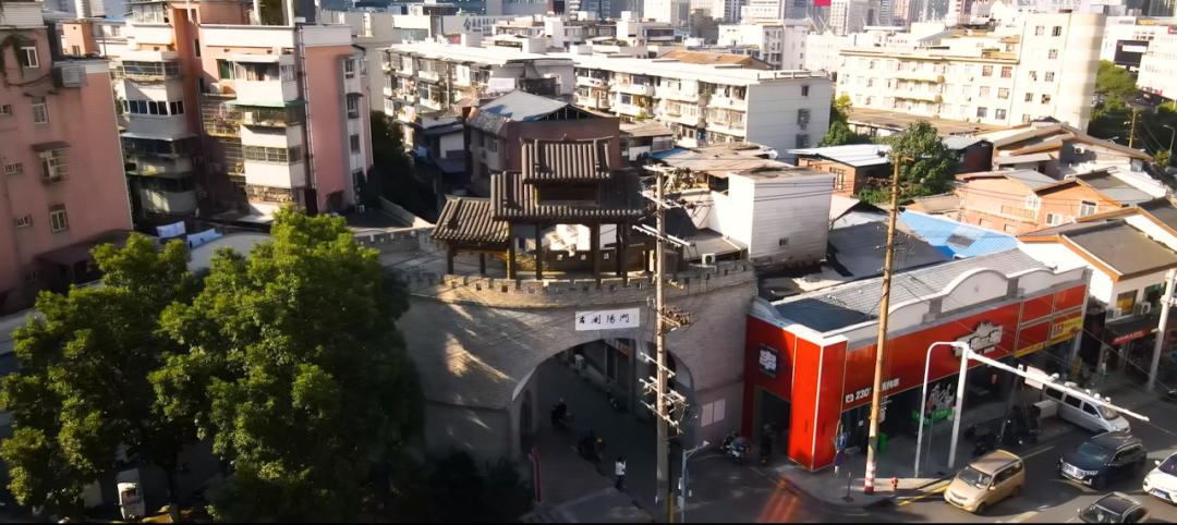 从解放路与建湘路交会处往北行数十米,城墙高耸、城楼巍峨,飞檐翘角、青砖黛瓦,闹市间,一座高约20米的巍峨城门格外引人注目,这便是复建的浏阳门。