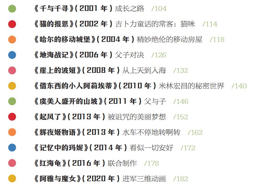 这本书首次收录1984年—2022年间吉卜力工作室全部长篇动画电影,从《风之谷》到《阿雅与魔女》,共计24部。