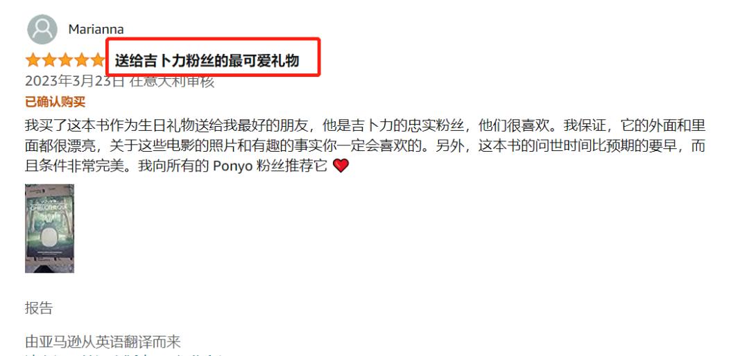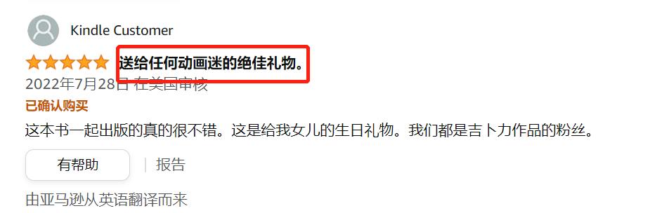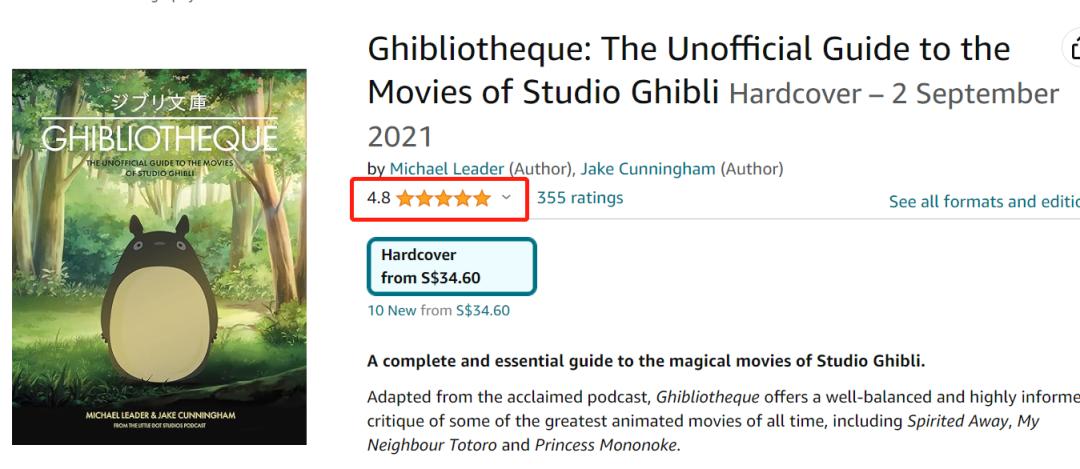 这本《吉卜力的动画王国》不仅登上2022年亚马逊畅销书榜,更是收获了美亚4.8分的超高评价,每个吉卜力粉丝都为这本书送上好评。