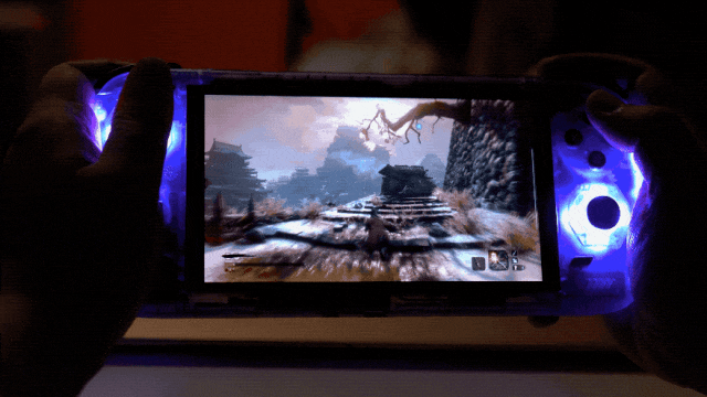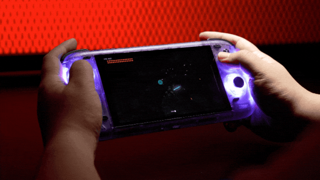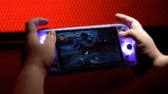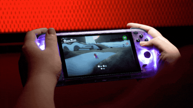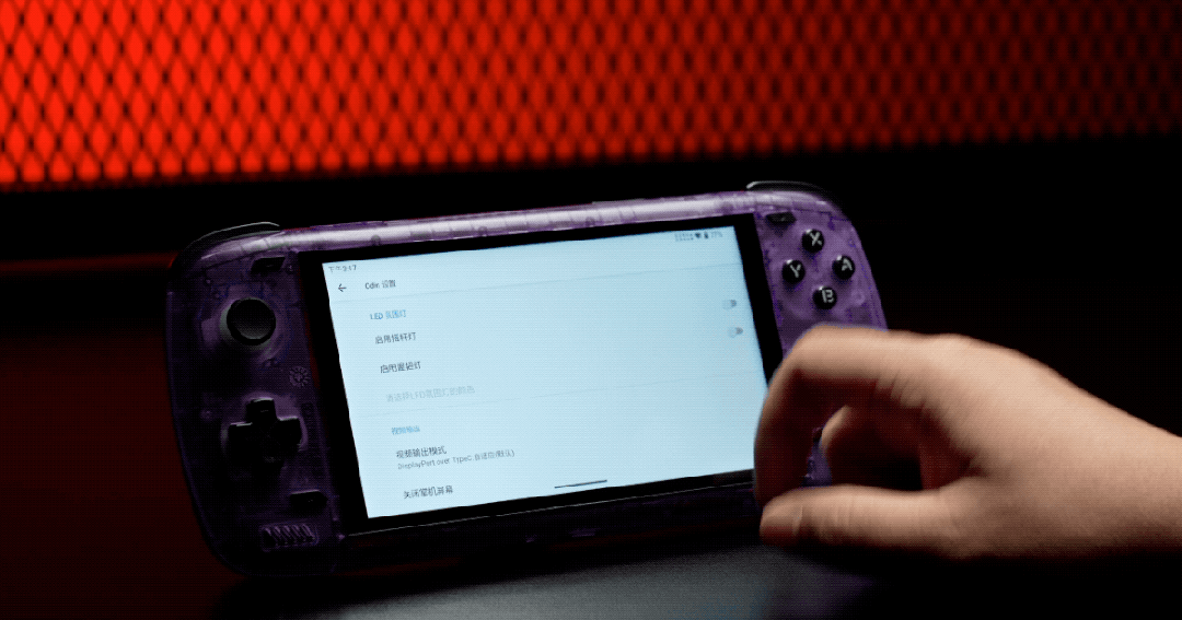 这台掌机还有个有意思的点是,它保留了摇杆周围、以及侧边的 RGB 灯效,如果你不嫌扎眼睛,可以在设置里调整你喜欢的光污染颜色,透明机身亮起来之后还是蛮酷炫的。