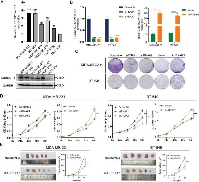 AURKAIP1促进了三阴性乳腺癌(TNBC)的细胞增殖和迁移。