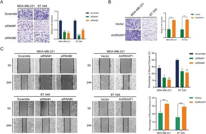 AURKAIP1对TNBC细胞迁移的贡献。研究结论
