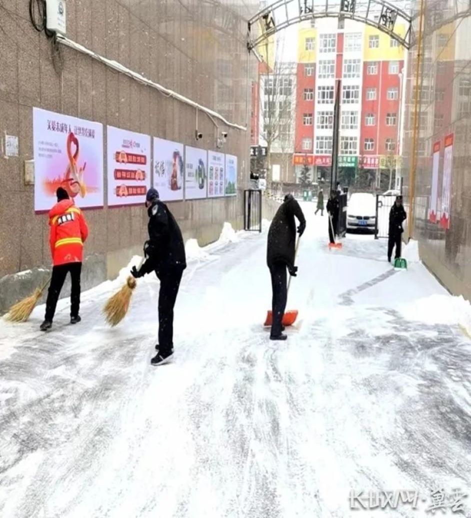 物业工作人员及时清扫小区积雪。通讯员 张国亮 供图同时,欣阳小区所在社区新安社区、玉泉佳苑小区所在社区永兴社区及时与兴康物业建立联系,分别成立联合党支部,交叉任职、各司其职,促使物业管理步入正轨。