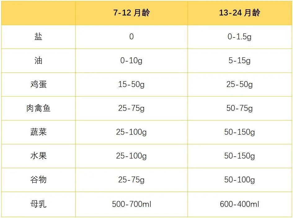 我们说,对于7~12月龄的宝宝来说,母乳/配方奶依然是宝宝的主要食物,给宝宝提供2/3~1/2的营养物质,辅食喂养量以不能影响正常奶量为准。