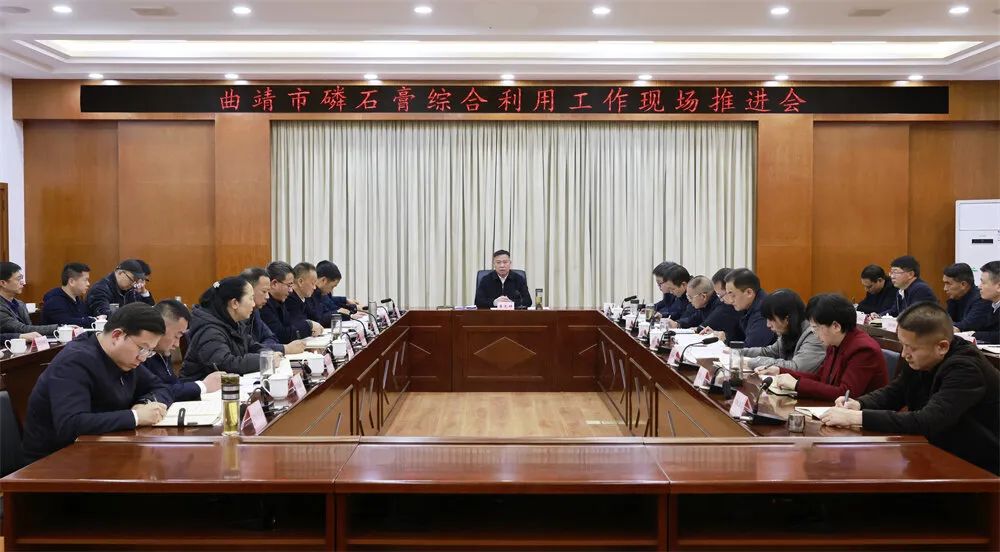 李先祥指出,磷石膏综合利用是曲靖必须交出合格答卷的政治必答题,是必须啃下的硬骨头。各级各部门要统一思想、坚定决心,坚持“严控增量、消纳存量、提高质量、动态平衡”,走出符合曲靖实际的磷石膏综合治理、系统治理、协同治理路子。李先祥要求,要深入实施全面加强磷石膏综合利用三年攻坚行动,突出重点、系统施策,全面提升综合利用水平。要把“源头减量”作为根本之举,加强磷矿开采管理,严控湿法磷酸产能规模,积极启动清洁化改造,全面实施磷石膏“以渣定产”,依法依规推动不达标企业关停退出。要自我加压,适度提高磷石膏综合利用率目标,通过“五个一批”提升磷石膏消纳利用能力。要以“宁做恶人、不做罪人”的勇气担当,实施最严格的磷石膏全流程监管,推行磷石膏无害化处理,开展污染防治集中攻坚,坚决守住生态安全底线。要通过招商引资、本地消纳和融合发展等措施,大力发展磷石膏资源利用产业,打造循环经济产业链。