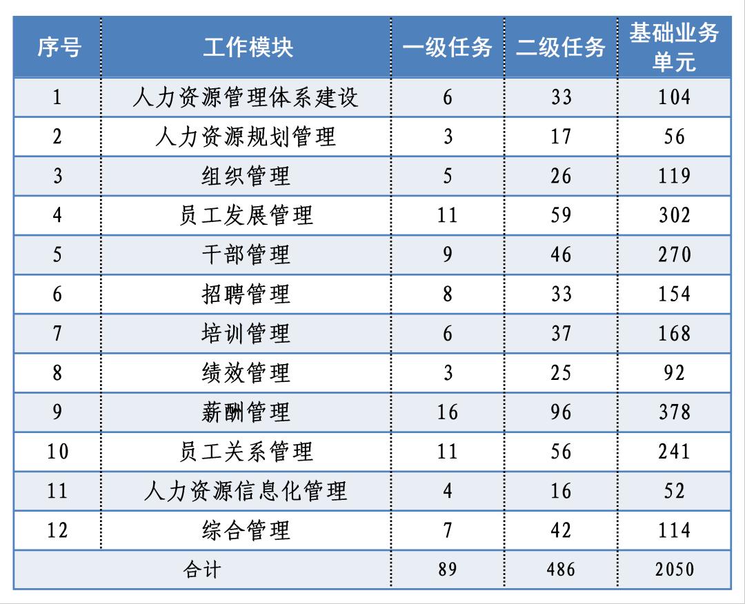 人力资源管理工作分解表三是强化“信息化赋能”。开发具有标准工时库管理、统计工时管理、考核工时管理、分析报表等功能的量化考核信息化管理系统,满足了实施单位量化考核数据统计、分析和应用需要,切实减轻量化考核工作量,提高了量化考核工作的效率和质量,为进行数据驱动的人力资源管理提供了有益探索。