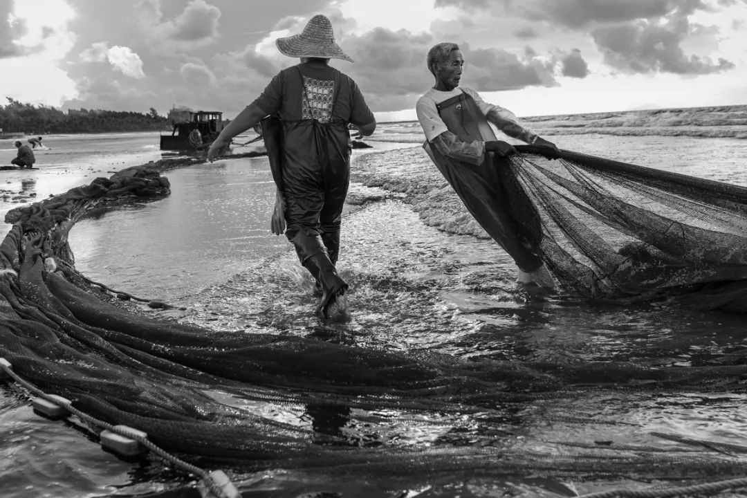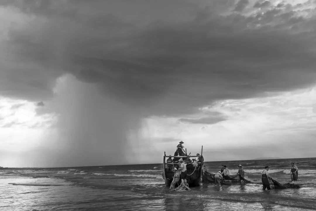 大海,于我而言,自小就血脉相融。在童年记忆里,粤西这片海,物产丰饶,渔村古朴,人文独特。数百年来,这里的人们以“耕海”为生,大海是他们赖以生存的“粮仓”。近十年来,我不断地行走在这片海滩上,尽可能让镜头贴近低处的海和渔民的内心,试图诉说海的故事和他们的生活。大海幽暗悲伤,涛声喑哑,在穹顶之下,它依旧无边无涯,匍匐于低处,亘古不变地抚慰大地。