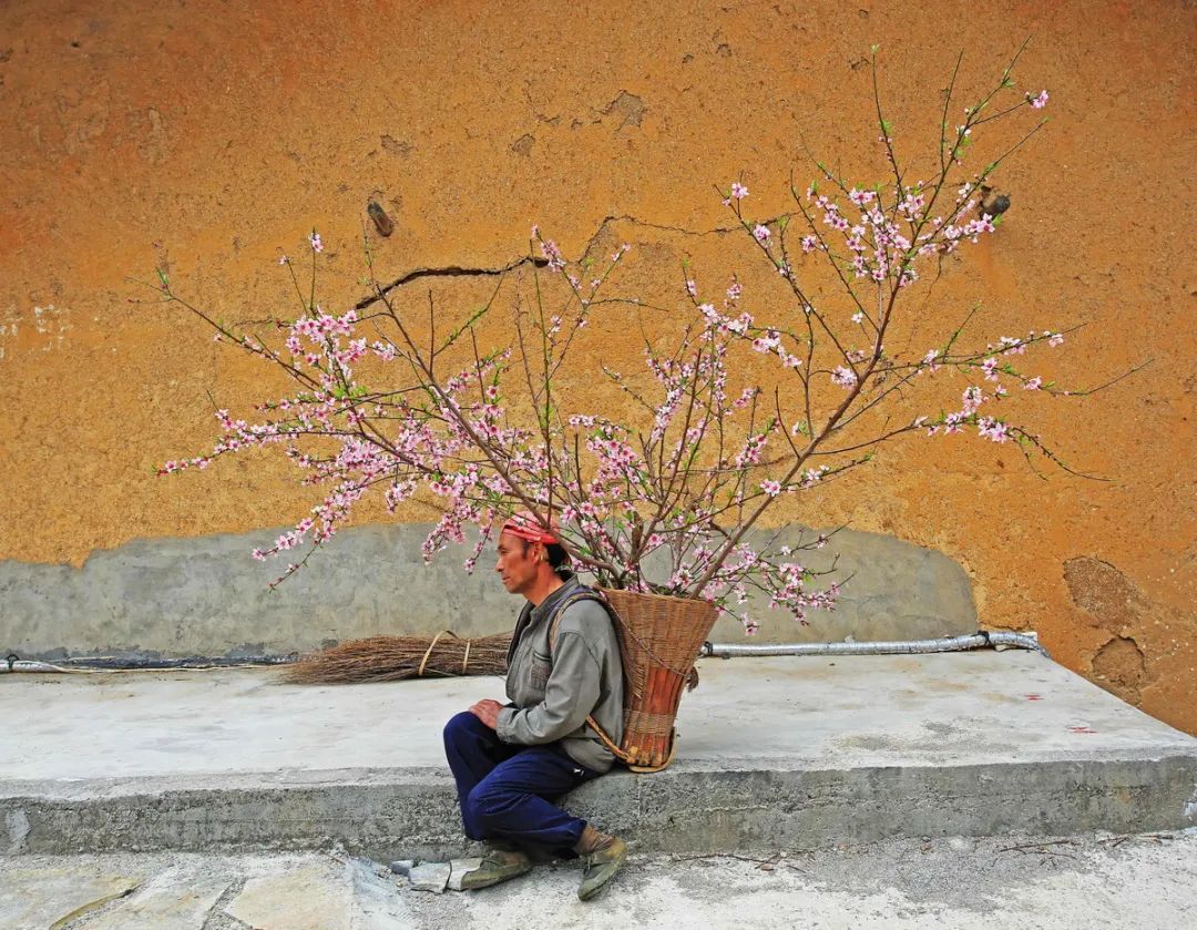 2012年3月8日,湖北秭归郭家坝,刘敏华把老家的桃花树背往新家,老家已淹没在水下。李风 摄