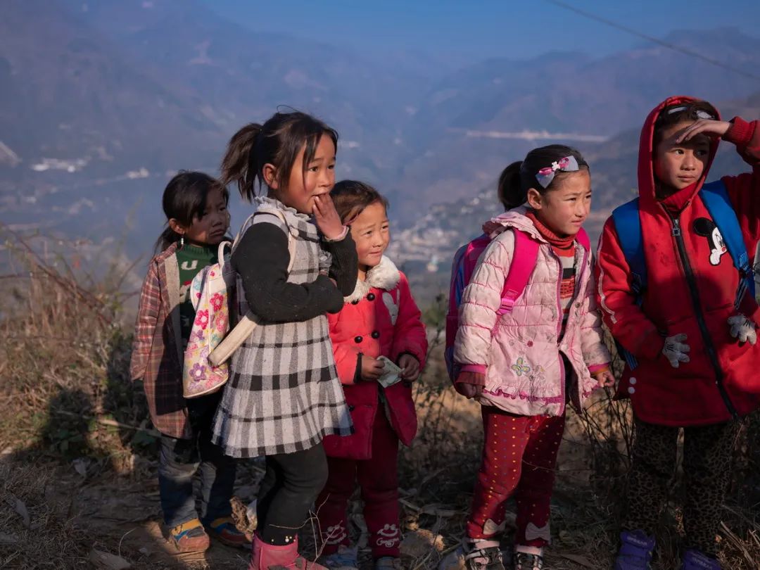 凉山州金阳县马依足乡,彝族小姑娘等公交车去往学校上课。杨凯生 摄