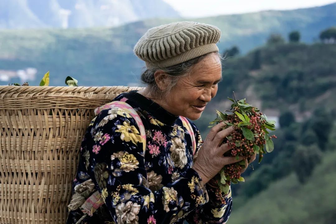 凉山州金阳县红联中心村,青花椒种植户张世春手捧花椒,露出欣喜之情。杨凯生 摄