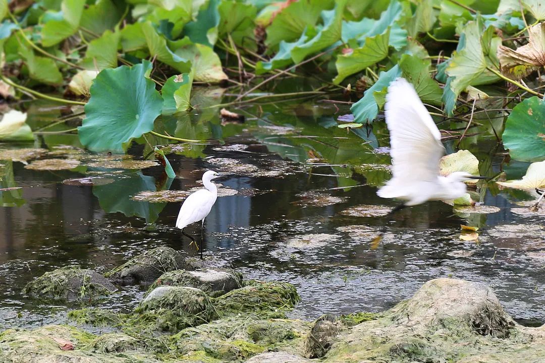 行走在绿意中,良好的生态环境吸引水鸟前来栖息。绿道的打造将景观亭、荷花池、文化墙等多处景观节点串珠成链,让每一步都有绿意相随,每一处都有风景相伴。