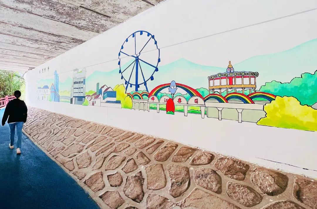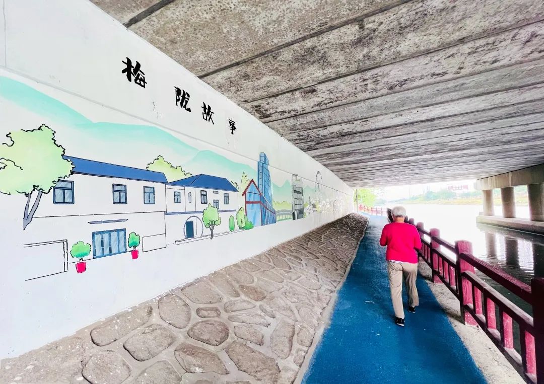 漫步河边,放眼望去,手绘墙犹如一幅徐徐打开的彩色长卷,诉说着梅陇的城市故事、人文美景,生活化的艺术让城市更加充满活力。