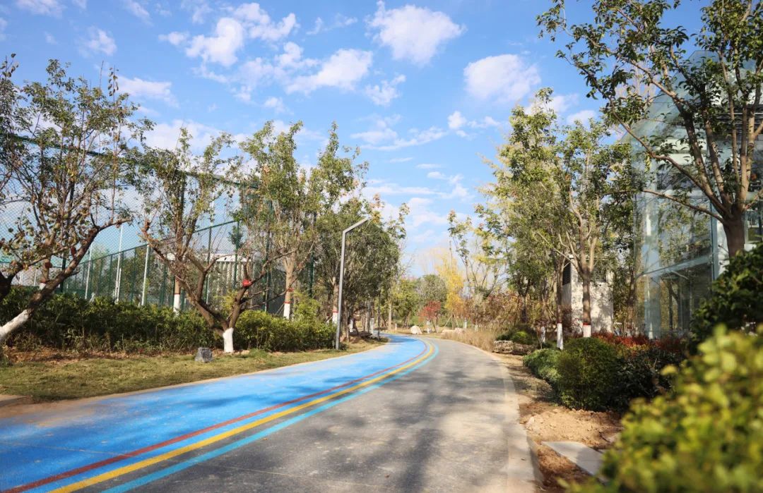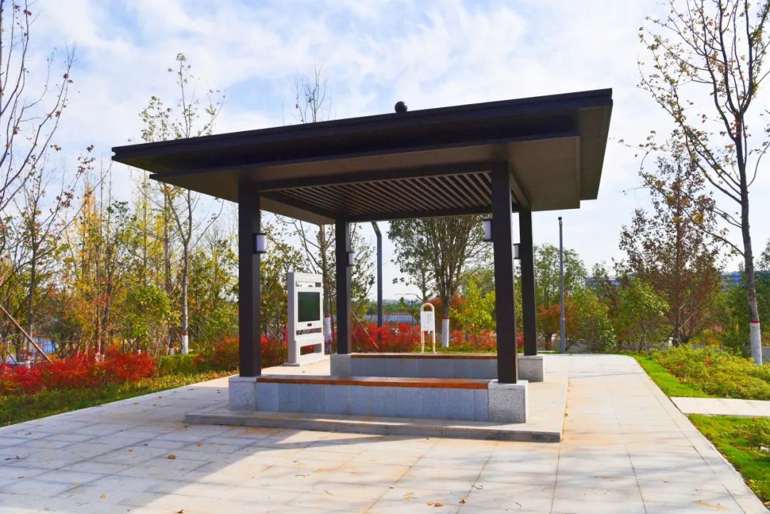 智慧跑道值得一提的是,富阎运动公园不仅仅是运动和休闲,还充满着高科技元素。公园跑道是以“跑步+漫步道”组合的形式建设的智慧跑道,总长约700米,融合了5G、人脸识别、大数据等智能技术,以智慧互动大屏、数据采集站为载体,在运动健身时能随时记录运动时长、速度、里程、消耗卡路里等运动数据,让群众感受到互动性、趣味性、科技感拉满的健身新方式。