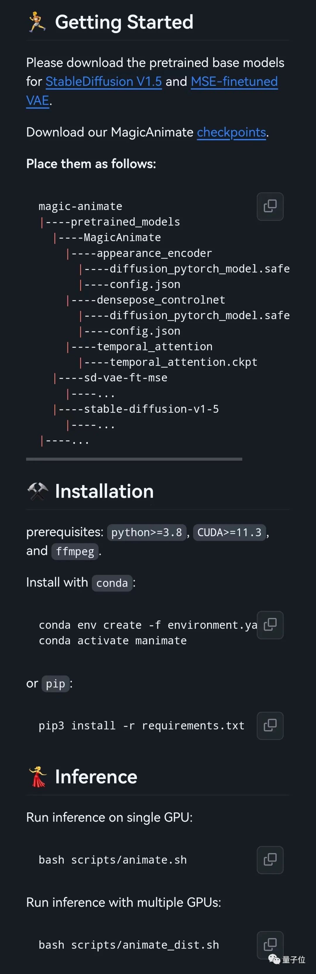 除此之外,MagicAnimate在GitHub中也给出了本地体验的方式,感兴趣的小伙伴可以试试哦~