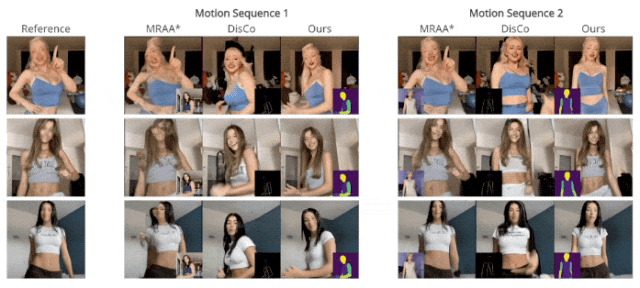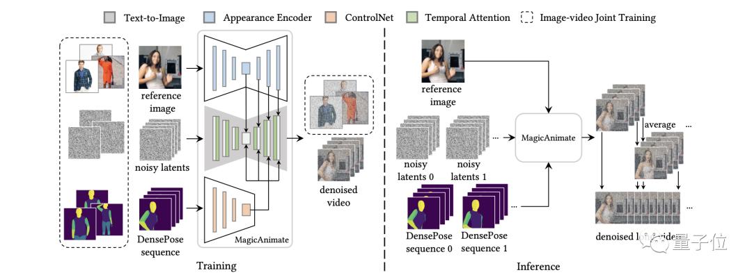 其次,为了保持帧间的外观一致性,团队引入了一种新的外观编码器(Appearance Encoder)来保留参考图像的复杂细节。