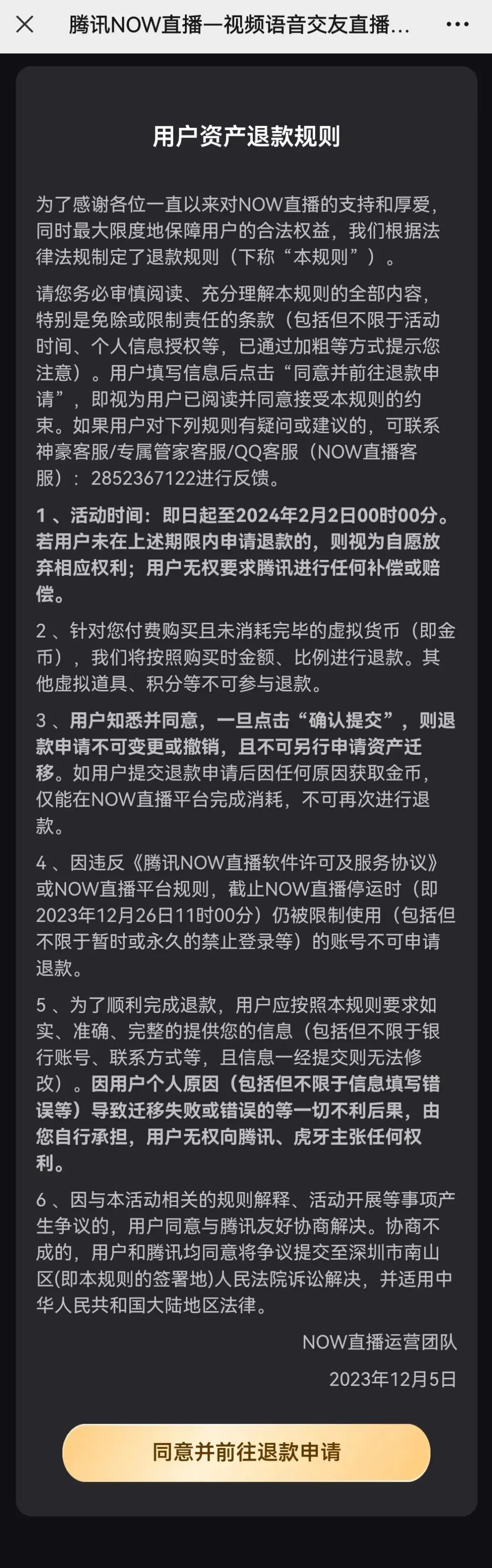 NOW直播官网发布的用户资产退款规则中指出,