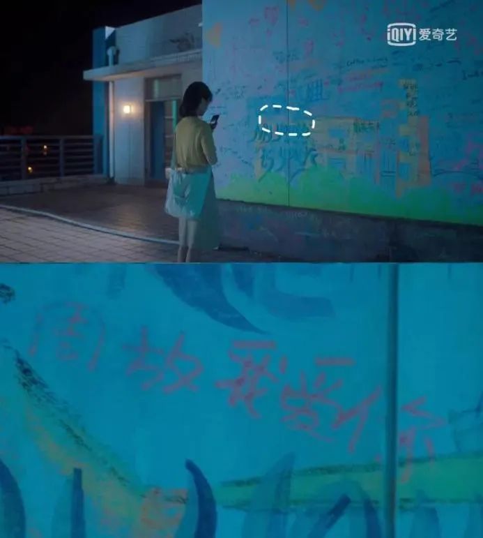 那是一场女主角向意中人坦露心迹的戏,只见镜头扫过女主面前的表白墙,在一堆五颜六色的涂鸦里,居然明晃晃地出现了“周放我爱你”5个大字,简直是狗粮撒到“丧心病狂”。