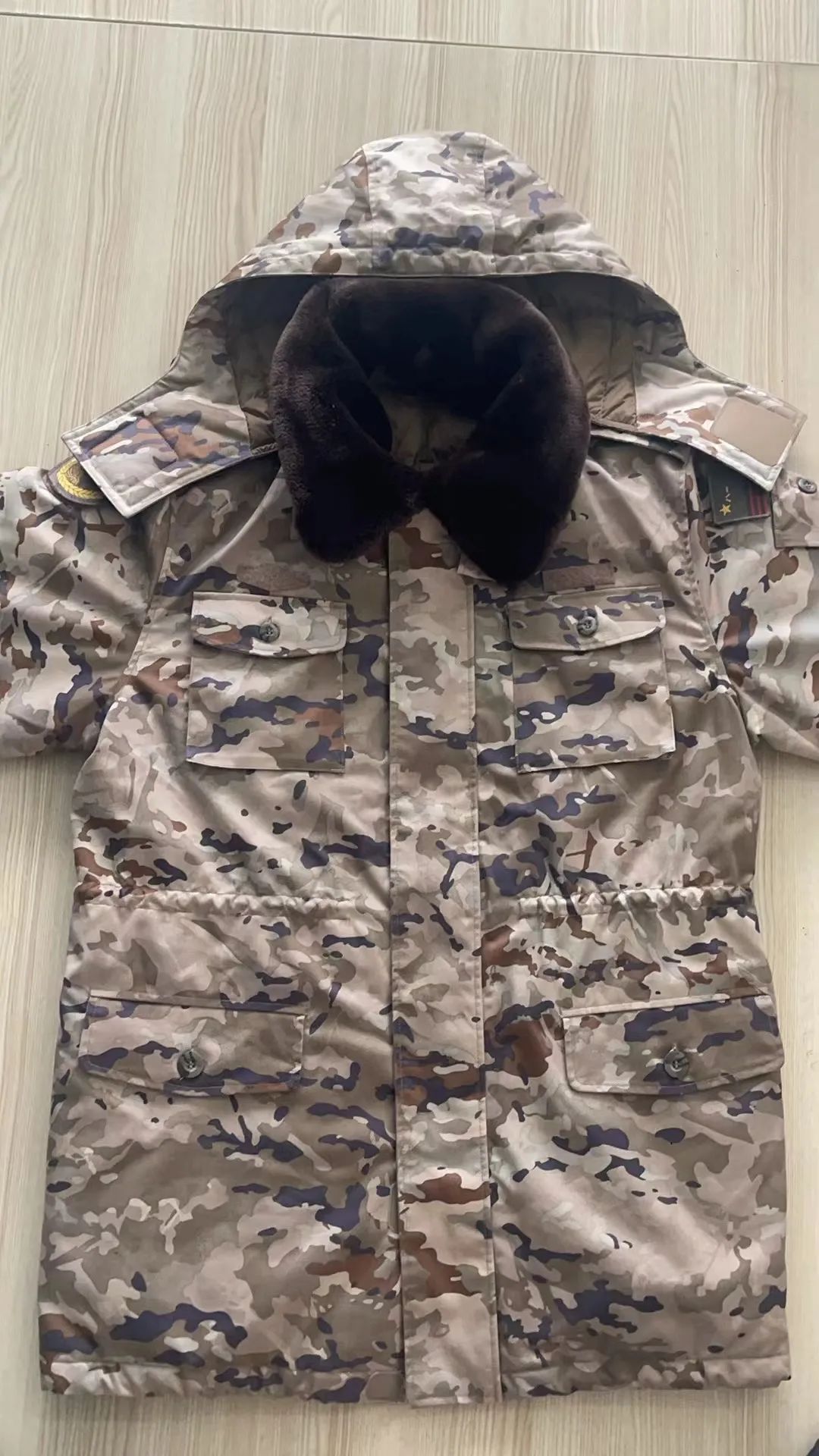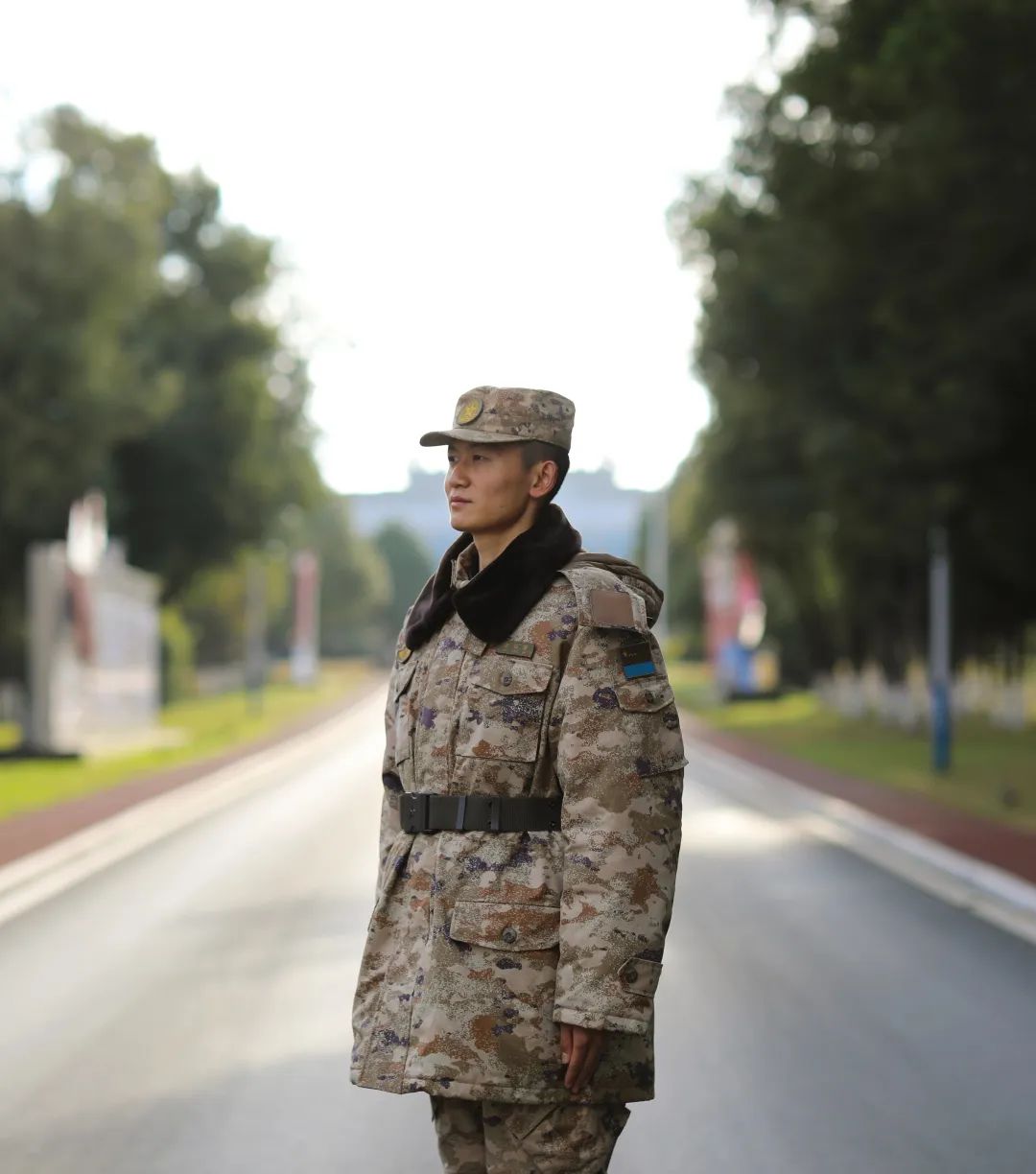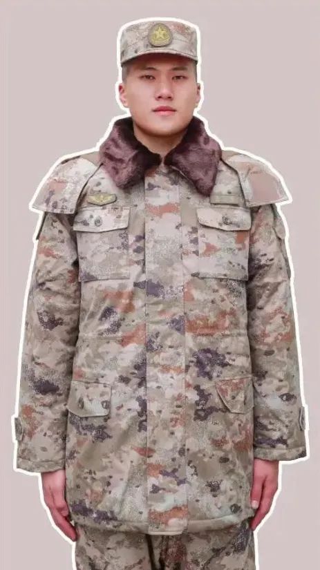 身着07陆军官温区棉大衣的