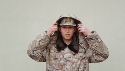 武警北京总队执勤第三支队战士身着07武警士兵冬常服大衣