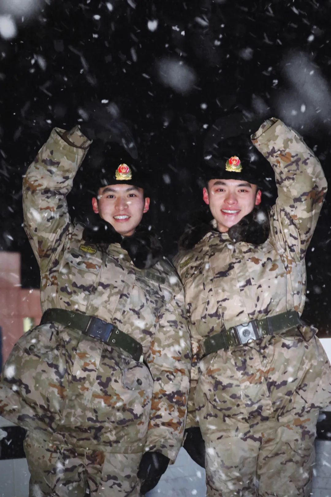 武警内蒙古总队鄂尔多斯支队两名战士身着21式作训大衣↓