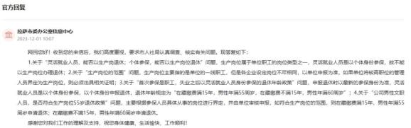 收到回复后,相关部门高度重视,要求拉萨市人社局认真调查、核实有关问题。现答复如下: