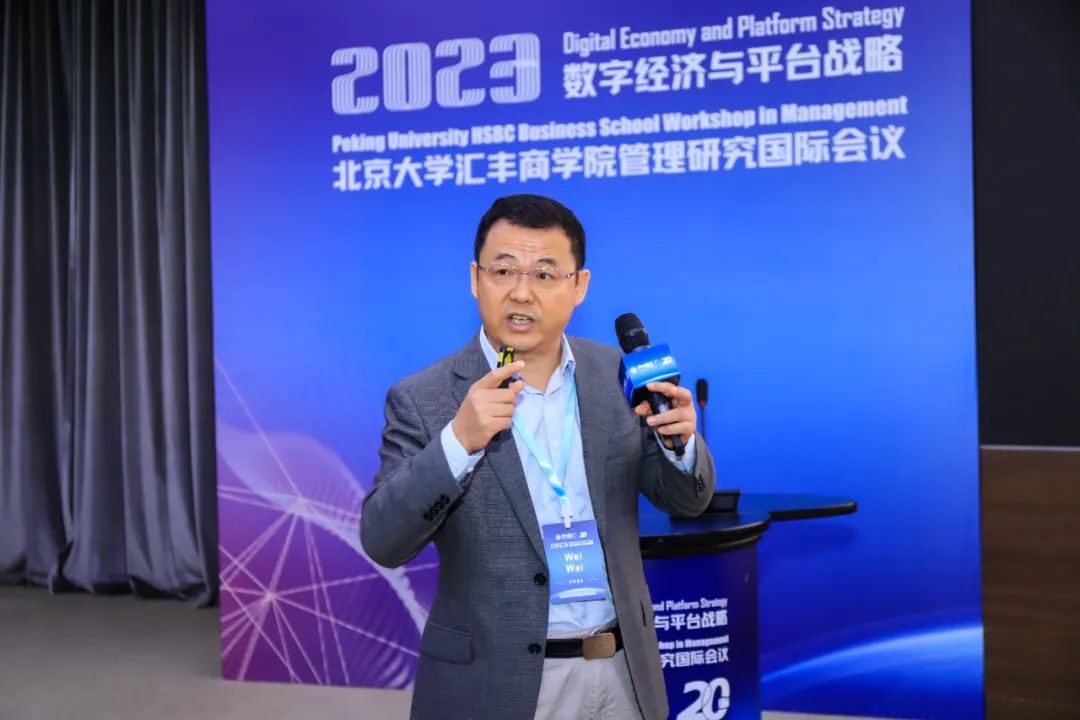 王鹏飞在主旨演讲环节,北京大学汇丰商学院管理学教授,剑桥大学嘉治商学院原院长、运筹与技术管理教授、中国管理研究中心联席主任Christoph H. Loch发表了题为 “Platforms as an Opportunity to do High Impact Research”(平台作为进行高影响力研究的机会)的主旨演讲。他讨论了平台研究的演变格局,指出这一演变从内部架构平台(实现模块化、大规模定制和灵活性)发展到双边市场平台,连接了许多先前未连接的供应商和消费者。平台业务模型和市场设计是一个蓬勃发展的研究领域,涉及多个学科,并且在识别新市场、增加对新社区商品和服务的获取方面产生了影响。目前,这方面的许多研究都围绕优化现有市场结构展开。尽管这种研究方法是文章发表的来源,但当实证现象(平台)受到强烈的动态影响时,它可能会滞后:情感购买的影响不断增长,平台需要适应新的竞争要素,包括拥抱 B2B 客户和具有非常不同客户和供应商特征的其他市场。对这种快速竞争变化的研究需要捕捉在不断演变的生态系统中的创业机会。Loch强调,研究者需要识别和理解企业实践活动中涌现的创新思想。