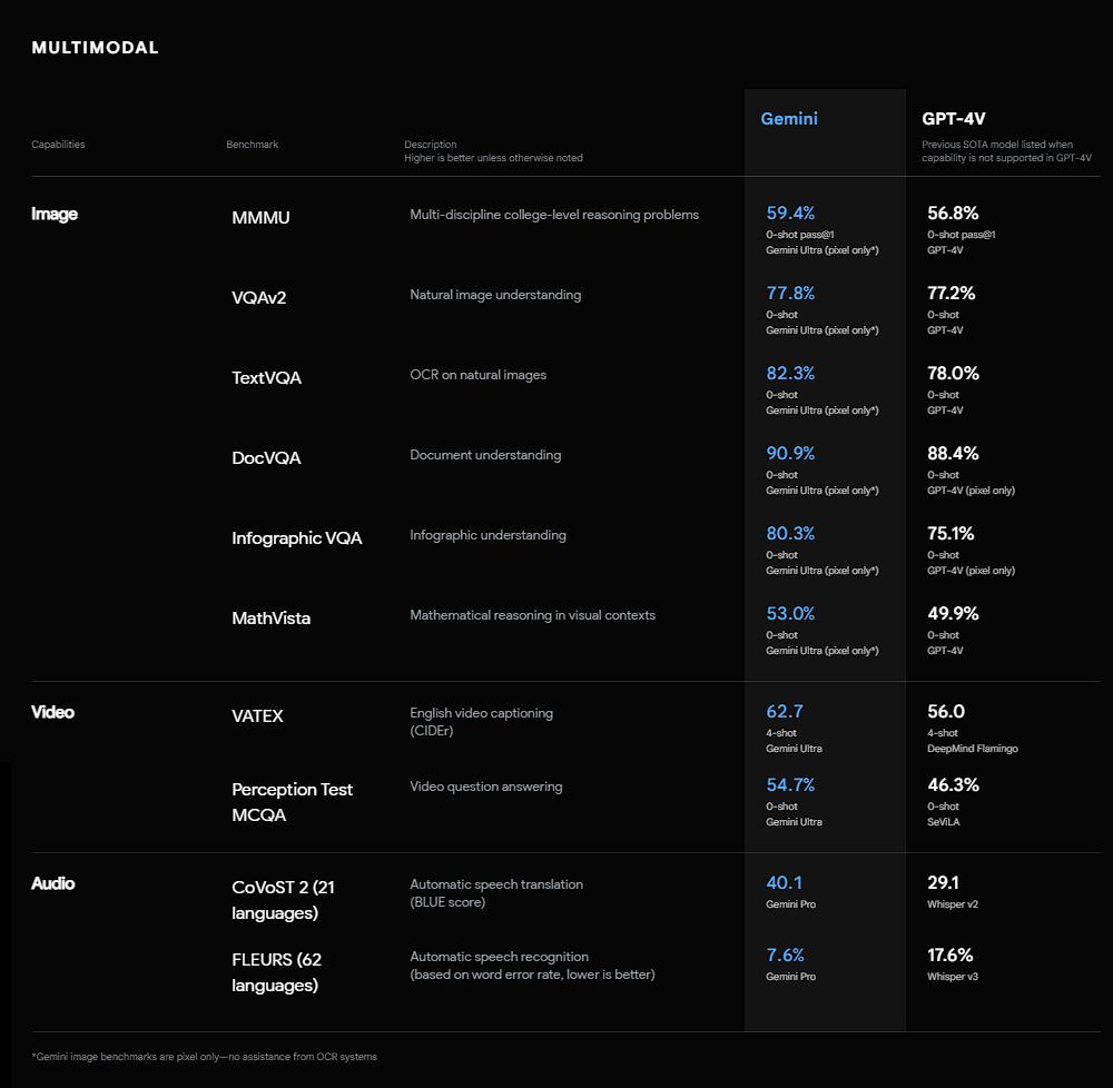 从测评数据上来看,Gemini的性能在多模态任务上全面超越GPT-4V。