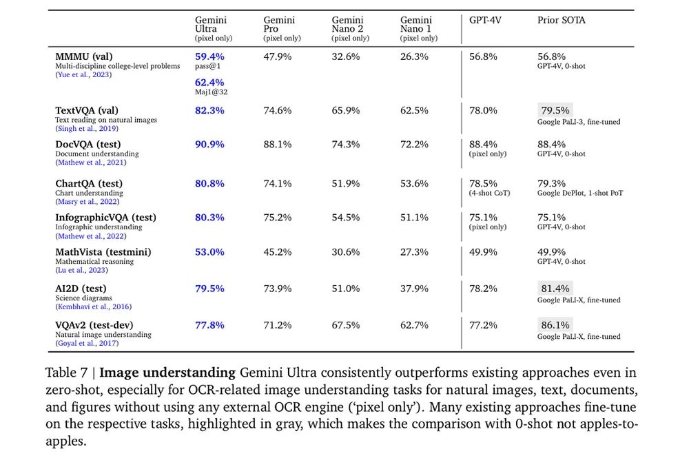 在图像理解方面,Gemini Ultra也优于现有的方法。