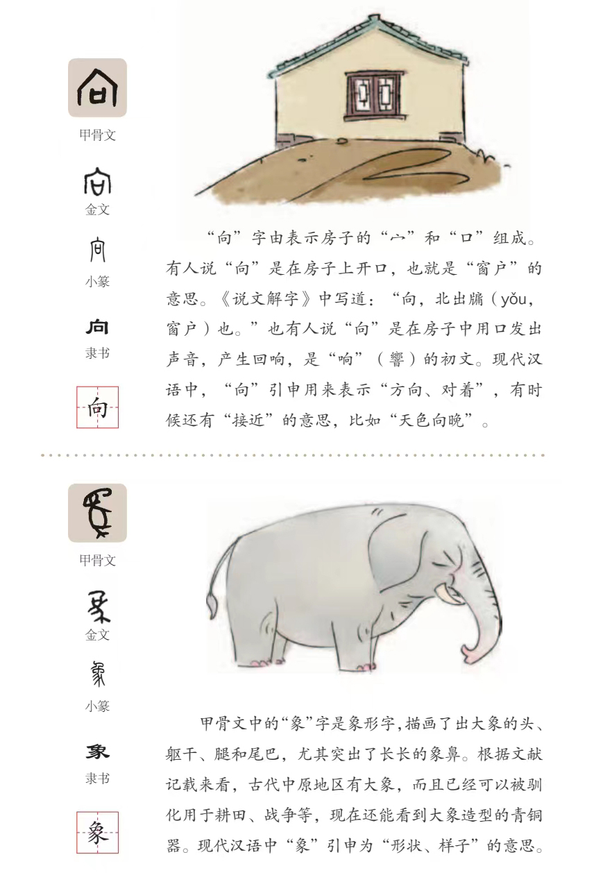 当然《画识甲骨文》只有近二百个字的甲骨文读物,并不能让我们马上探索完古文字的源头。但他一定让你走进甲骨文,让你对甲骨文产生由衷的兴趣,并找到认识古文字、明白现代字的一个可探索之路径。