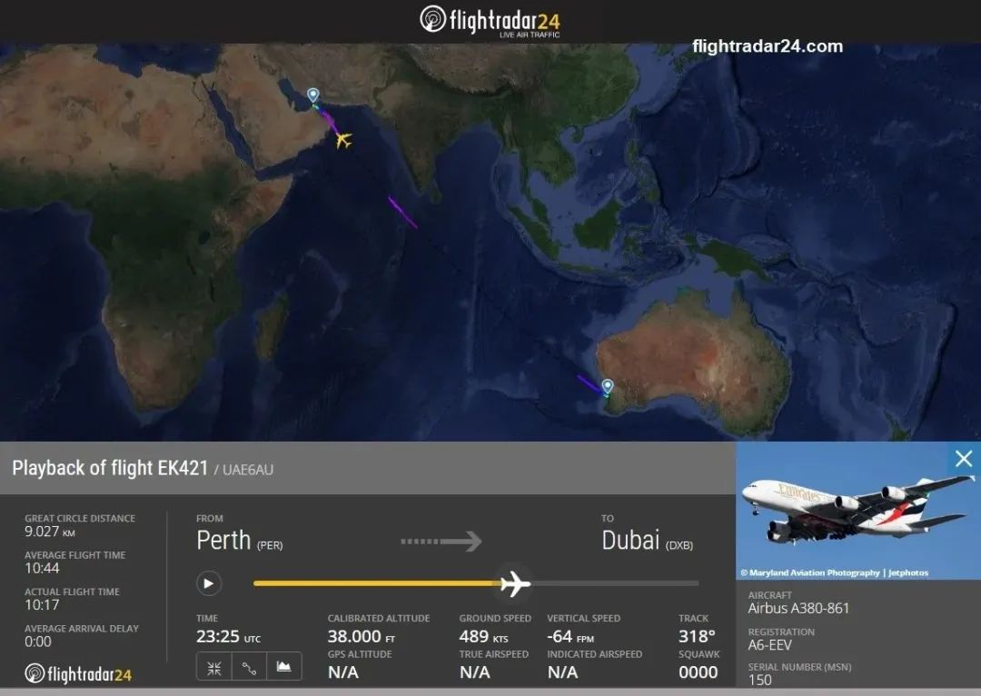 报道称,涉事飞机为阿联酋航空一架A380(注册号为A6-EEV),当日执飞EK341航班,从澳大利亚珀斯飞往迪拜。飞机在38000英尺高度时,遭遇严重湍流,致机身剧烈摇晃,机上至少14人受伤。据悉,事发时很多乘客没有系上安全带,机身上下颠簸直接导致多名乘客被抛起,多次撞击天花板,甚至有乘客直接撞碎天花板。机上乘客表示,在经历湍流期间,飞机的餐饮服务被中断,乘客被告知坐在座位上,系好安全带。至少有一名乘客后来在飞机上呼叫“帮助”,并使用了氧气面罩。