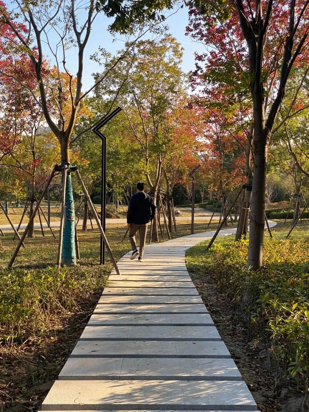 公园内、近外环处,城市里难得一见的郊野空间记者日前探访时,公园正在进行最后的绿化整理,各种色叶树分布在园中,一片深秋初冬的色调,整体呈现简约之美。为了给市民更好的游园体验,一座两层的配套设施正在紧锣密鼓施工中。